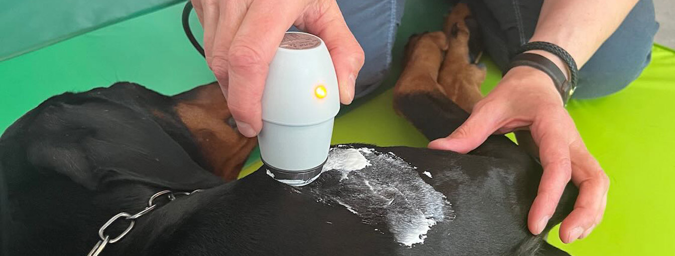 Die Ultraschalltherapie wird gleichermaßen für chronische und akute Schmerzen im Bewegungsapparat von Hunden eingesetzt und von den Tieren äußerst positiv aufgenommen. Dank ihrer sanften Natur empfinden Hunde die Behandlung als äußerst angenehm. Feinste mechanische Vibrationen durchdringen dabei tief liegendes Gewebe und wirken auf Gelenke und Nerven gleichermaßen stimulierend. Je nach Gerät können Ultraschallwellen bis zu einer Tiefe von 4 bis 6 Zentimetern eindringen.